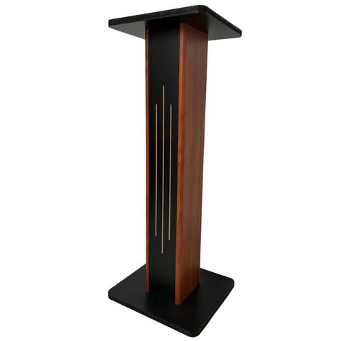 Toàn bộ chân loa được chế tác từ gỗ công nghiệp MDF (Medium-Density Fiberboard) cao cấp. Đây là vật liệu được ưa chuộng trong sản xuất phụ kiện âm thanh nhờ đặc tính đặc, nặng và khả năng triệt tiêu cộng hưởng âm thanh hiệu quả, tốt hơn nhiều so với việc đặt loa trên các mặt bàn hay kệ tủ rỗng.