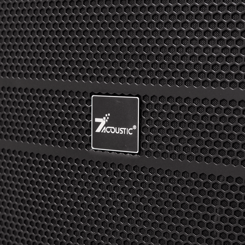 Ê căng: mặt trước loa được bảo vệ bởi tấm lưới kim loại dày dặn, được phủ sơn tĩnh điện, không chỉ bảo vệ củ loa khỏi các tác động vật lý mà còn góp phần vào vẻ ngoài mạnh mẽ, hiện đại của sản phẩm. Logo 7Acoustic thường được đặt nổi bật ở trung tâm.