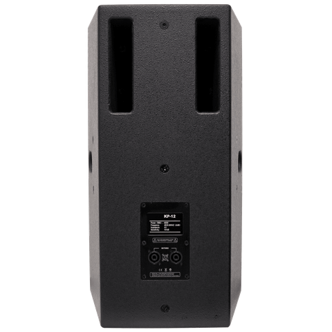 Thiết kế tối ưu: loa KP12 thường có thiết kế nghiêng (monitor) hoặc có các điểm treo (fly points) linh hoạt, cho phép người dùng dễ dàng bố trí đứng, nằm hoặc treo trên cao tùy theo không gian và mục đích sử dụng. Các tay cầm chắc chắn được tích hợp hai bên hông loa giúp việc di chuyển và lắp đặt thuận tiện hơn.