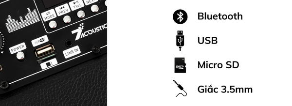 AUX 3.5mm, USB, Micro SD, Bluetooth |
